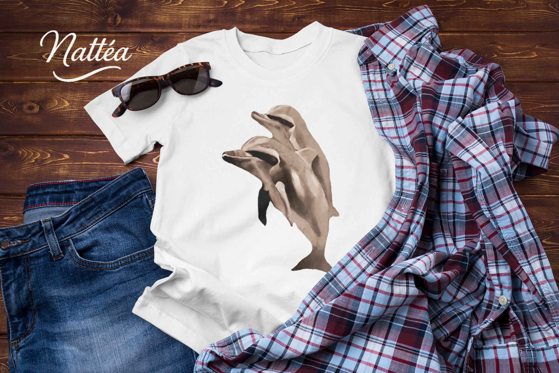Vintage Style Dolphin Art T-Shirt – Ocean Sea Life Design from Original Painting