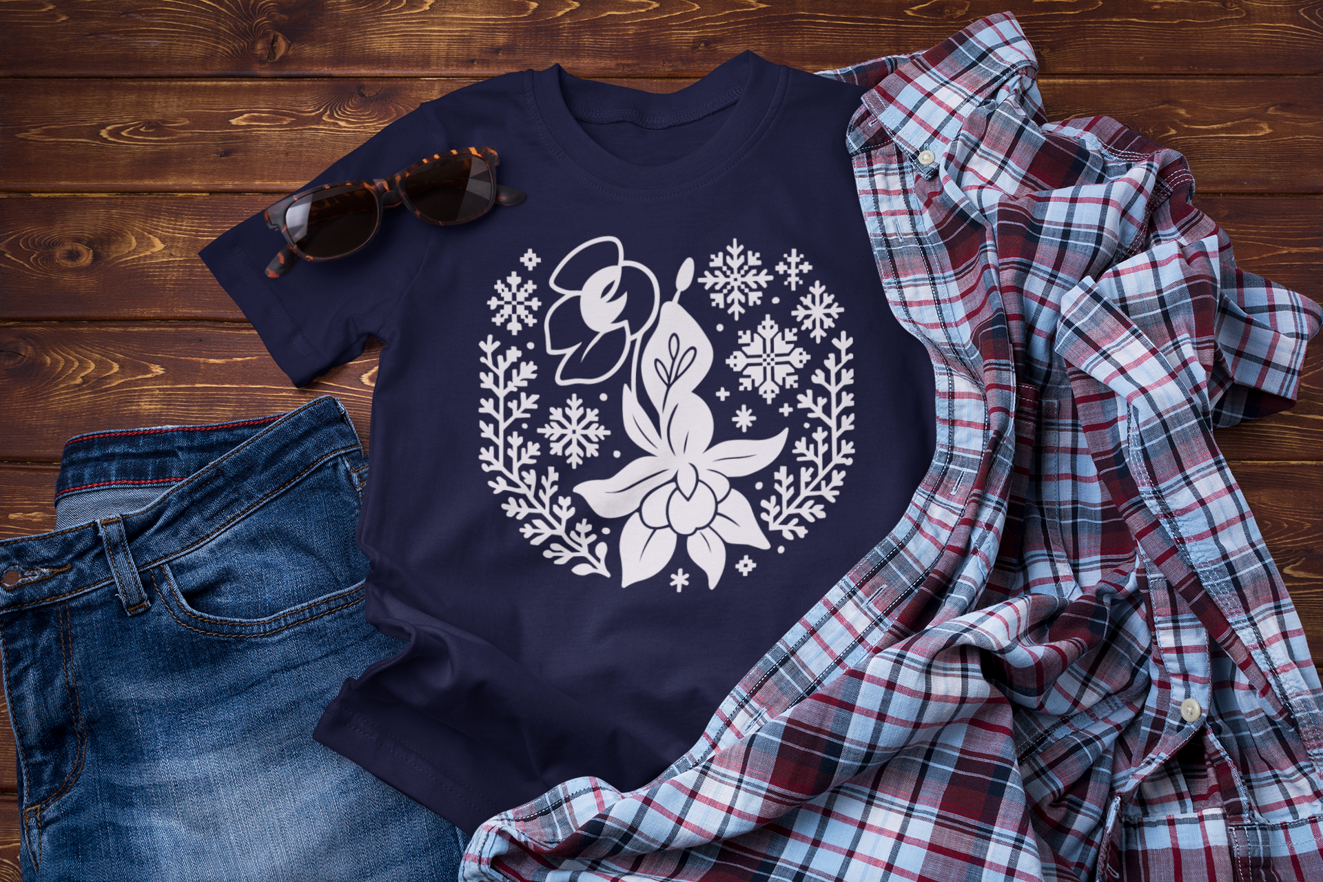 Winter Wildflower Folk Floral Graphic Tee – Elegant Botanical T-Shirt
